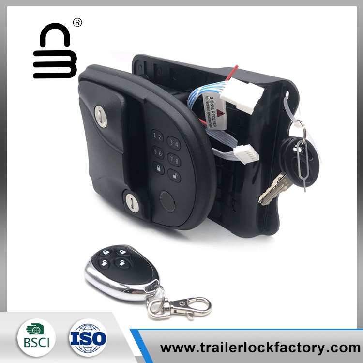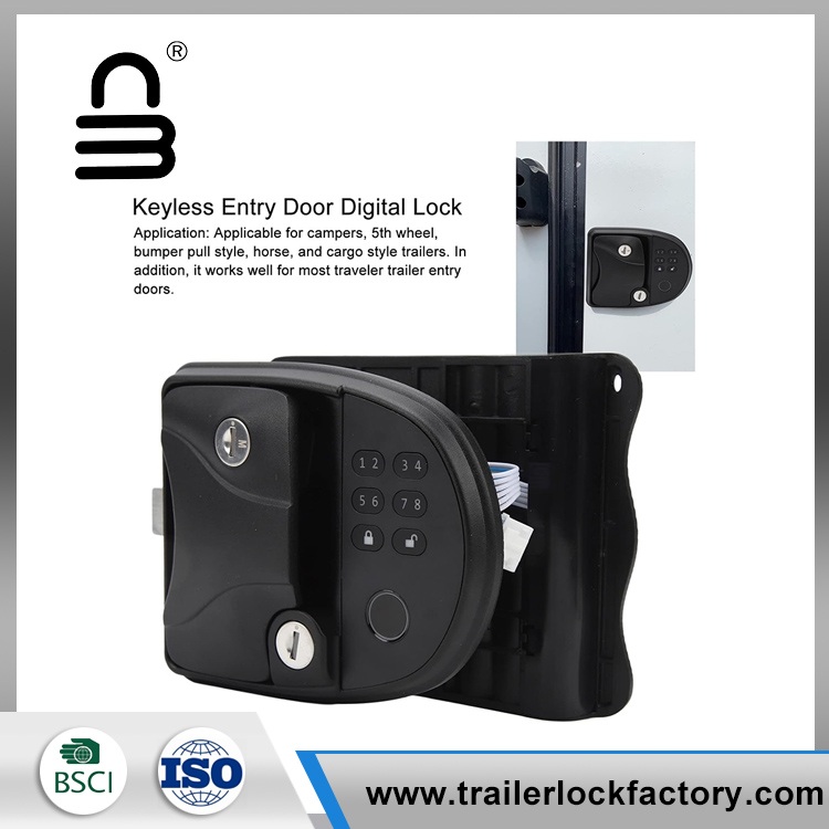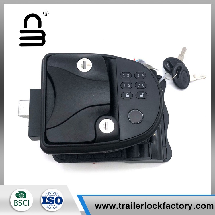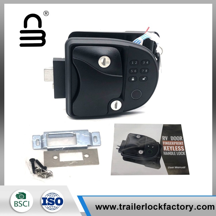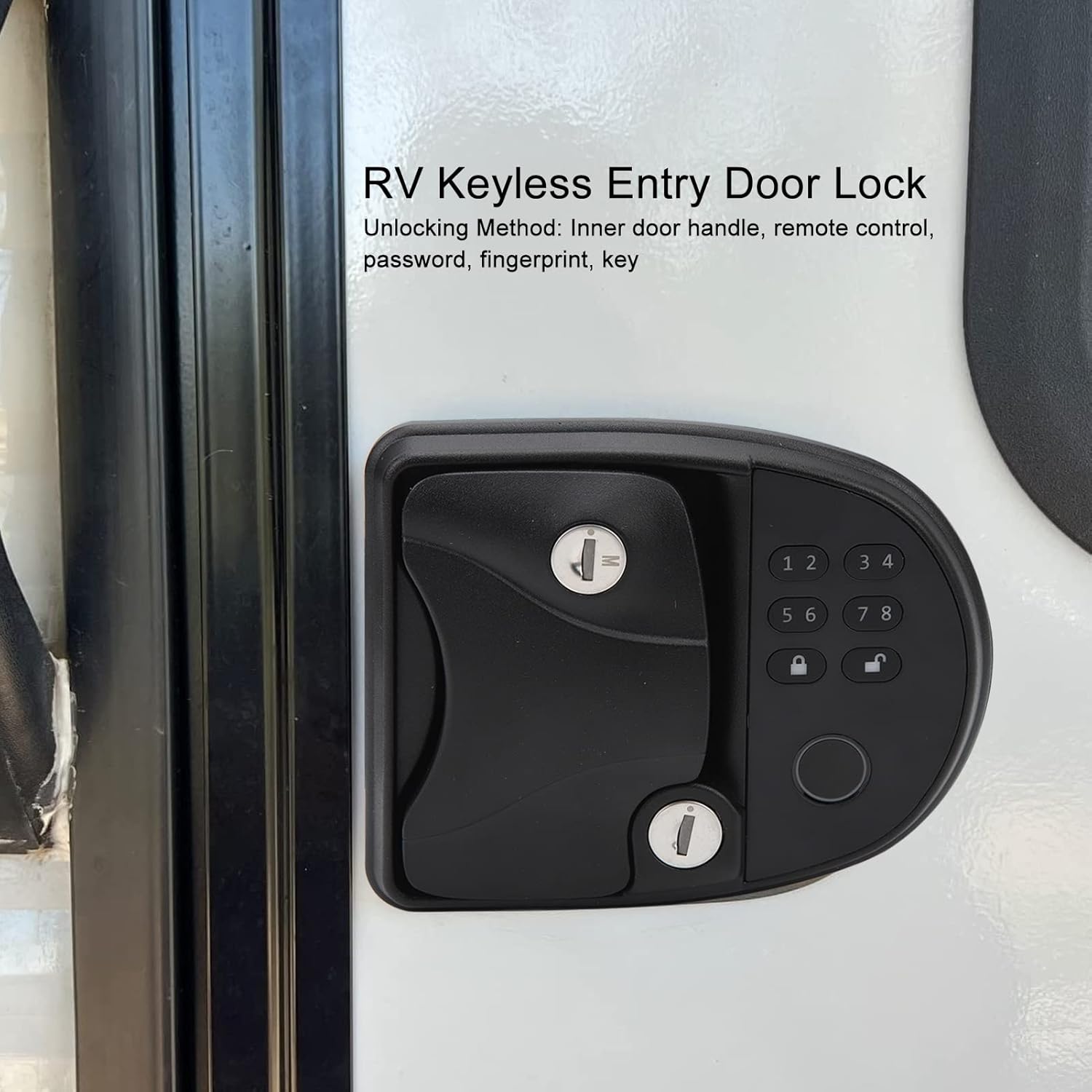 El bloqueo de la puerta de RV de huellas digitales tiene un teclado integrado de contraseña) El teclado integrado está diseñado para elegir entre más de 1 millón de códigos de desplazamiento (incluye mango sin llave, bloqueo de huellas dactilares y tecla mecánica) nunca se preocupe por olvidar o perder claves) y control remoto
