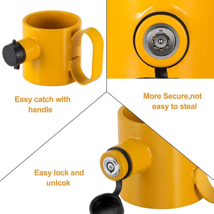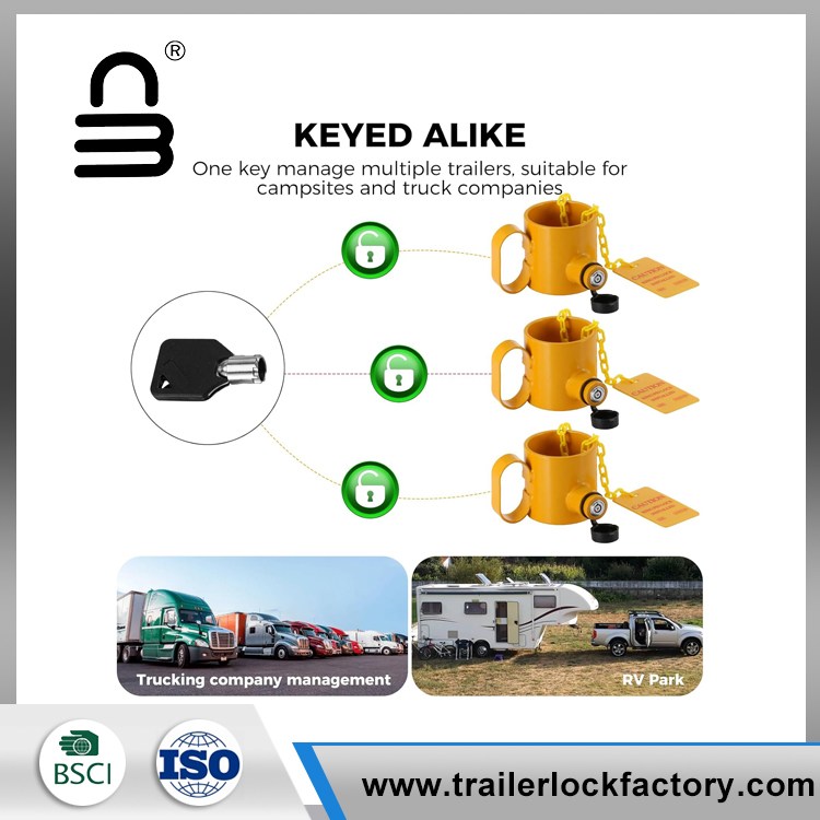Este mechón de rey Pin está hecho de acero de aleación, Hitch Lock lo suficientemente fuerte para resistente a la intemperie, tiene un fuerte elemento disuasorio. El manguito de acero No.45 de alta resistencia y el cilindro de bloqueo de cobre agregan más dificultades para los ejercicios de robo y aumentan la vida útil.